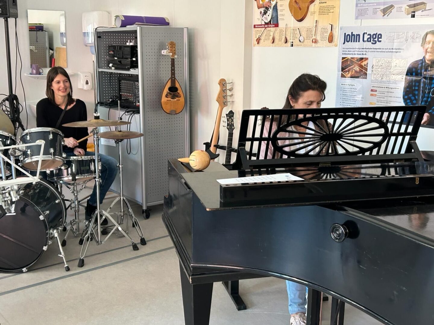 Die Theaterklasse wies mit Max und Moritz-Figuren auf das diesjährige Stück hin, und die Musikabteilung beeindruckte mit einem bunten Programm aus Instrumentalisten, Chorsängern und Perkussionisten. In der Religionsabteilung konnte man sich in einem mit Teelichtern versehenen betretbaren Labyrinth persönlichen Fragen stellen.