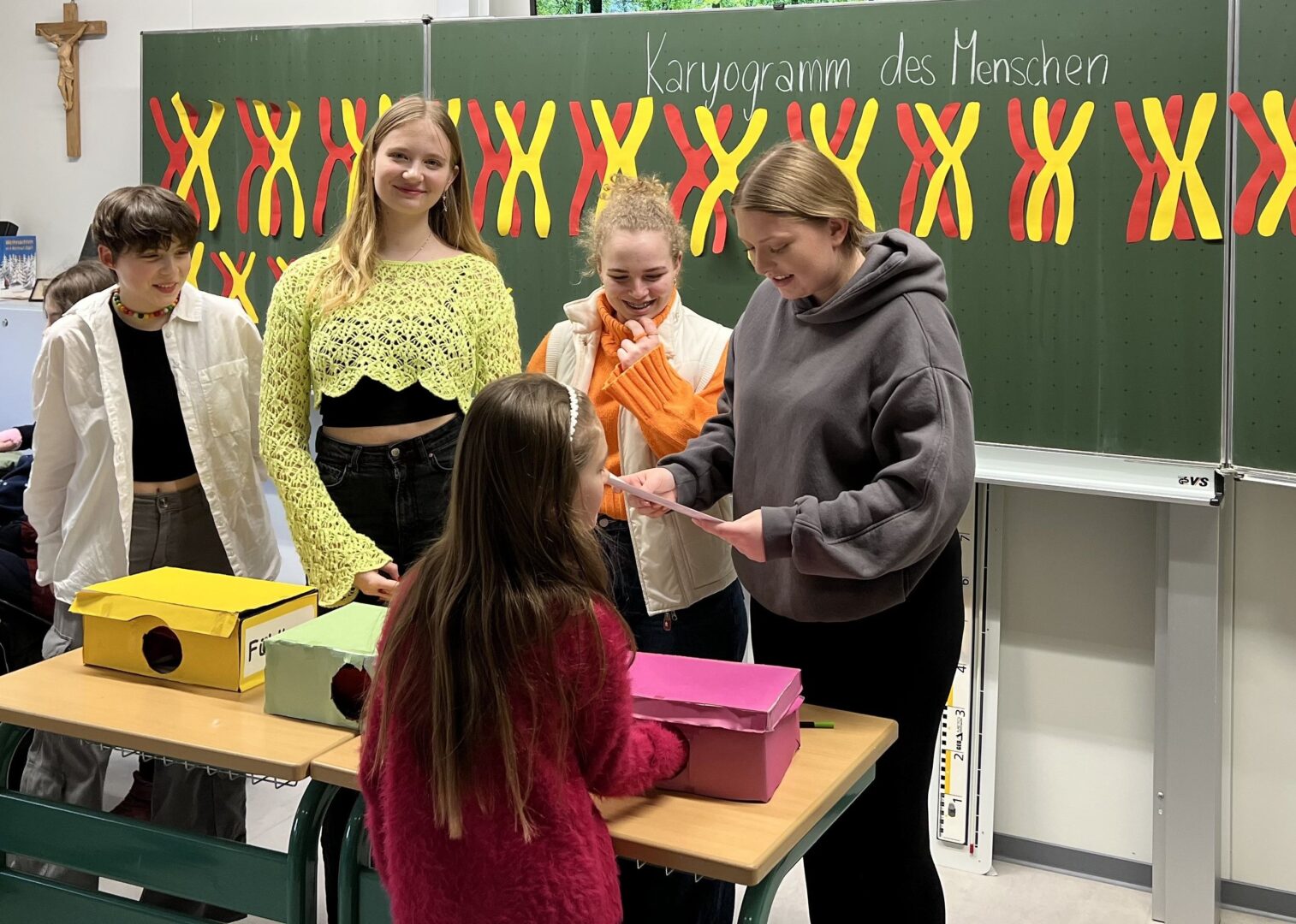 Die Schule verwandelte sich für diesen Tag in eine bunte Erlebniswelt, die jedem Fachbereich ermöglichte, seine Leidenschaft und Kreativität zu präsentieren. Im Fach Geographie konnten die Besucher ihren eigenen Globus basteln, während Wirtschaft und Recht mit einem Quiz über den Euro und einem süßen Produkttest zwischen Schokobons und Milchmäusen lockte.