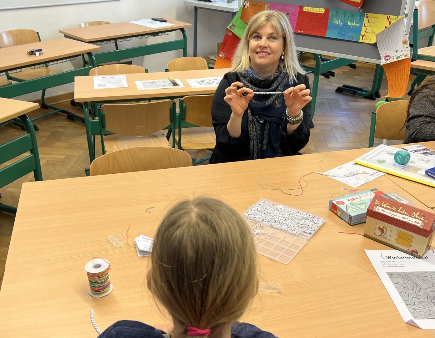 Wer zum Textilen Gestalten ging, landerte im „Näherholungsgebiet“ und dort entstanden kleine Vögelchen, während im Deutschunterricht die Namensketten bei den Mädchen großen Anklang fanden – nicht zuletzt wegen des schnell zur Mangelware gewordenen Buchstabens A, doch welcher Mädchenname kommt schon ohne diesem klangvollen Laut aus?