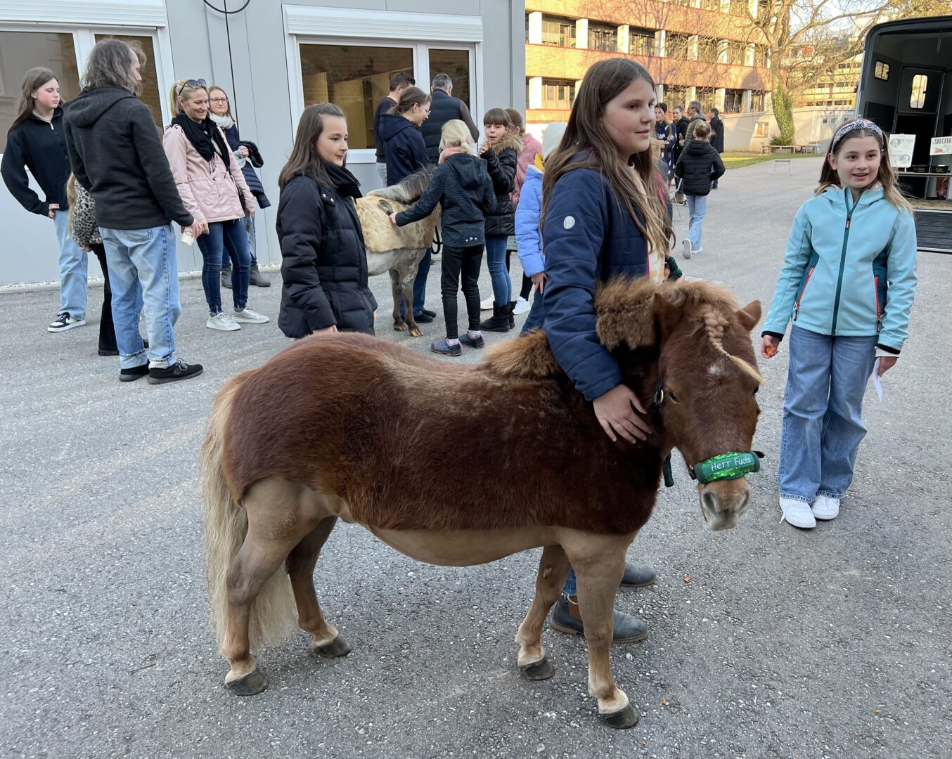 Mädchenbildung, die neuerdings übrigens besonders sattelfest ist: Denn zwei Ponys im Schulhof wiesen auf das neuerdings angebotene Wahlfach Reiten hin, das sichtlich Begeisterung bei den jüngeren Gästen weckte.