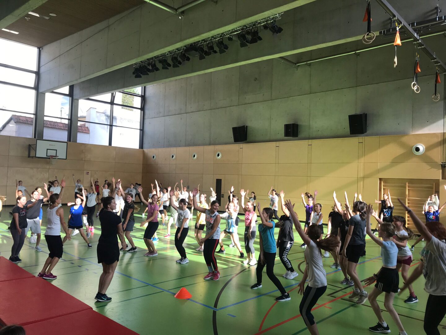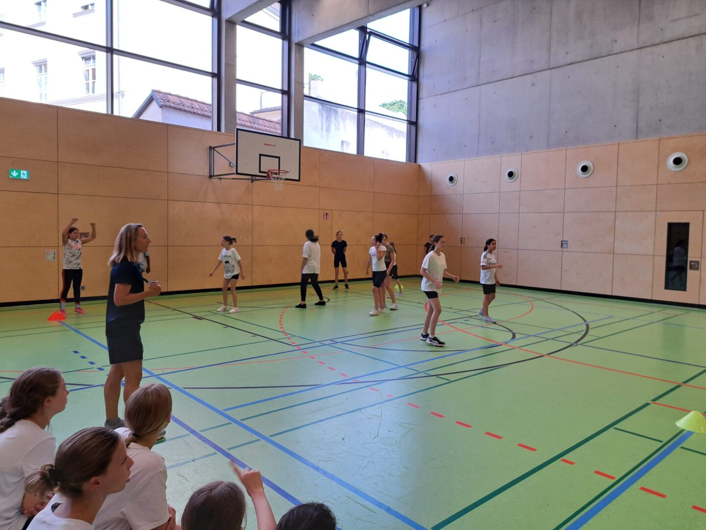 Zu Beginn des Turniers wurden alle Teilnehmer herzlich begrüßt und eine kurze Einführung in die Regeln des Spiels gegeben. Die allgemeine Begrüßung erfolgte durch die SportlehrerinnenMagdalena Kania, Theresia Schweiger, Ruth Winkler und Ines Stelzle, die alle Schülerinnen auf das bevorstehende Turnier einstimmten. Anschließend sorgte Frau Schweiger als Motivationscoach mit einem Warm-up zu Musik für die nötige Aufwärmung. Unterstützt wurde sie dabei von Frau Stelzle, die ein Dehnprogramm durchführte, um alle auf die bevorstehenden Spiele vorzubereiten.