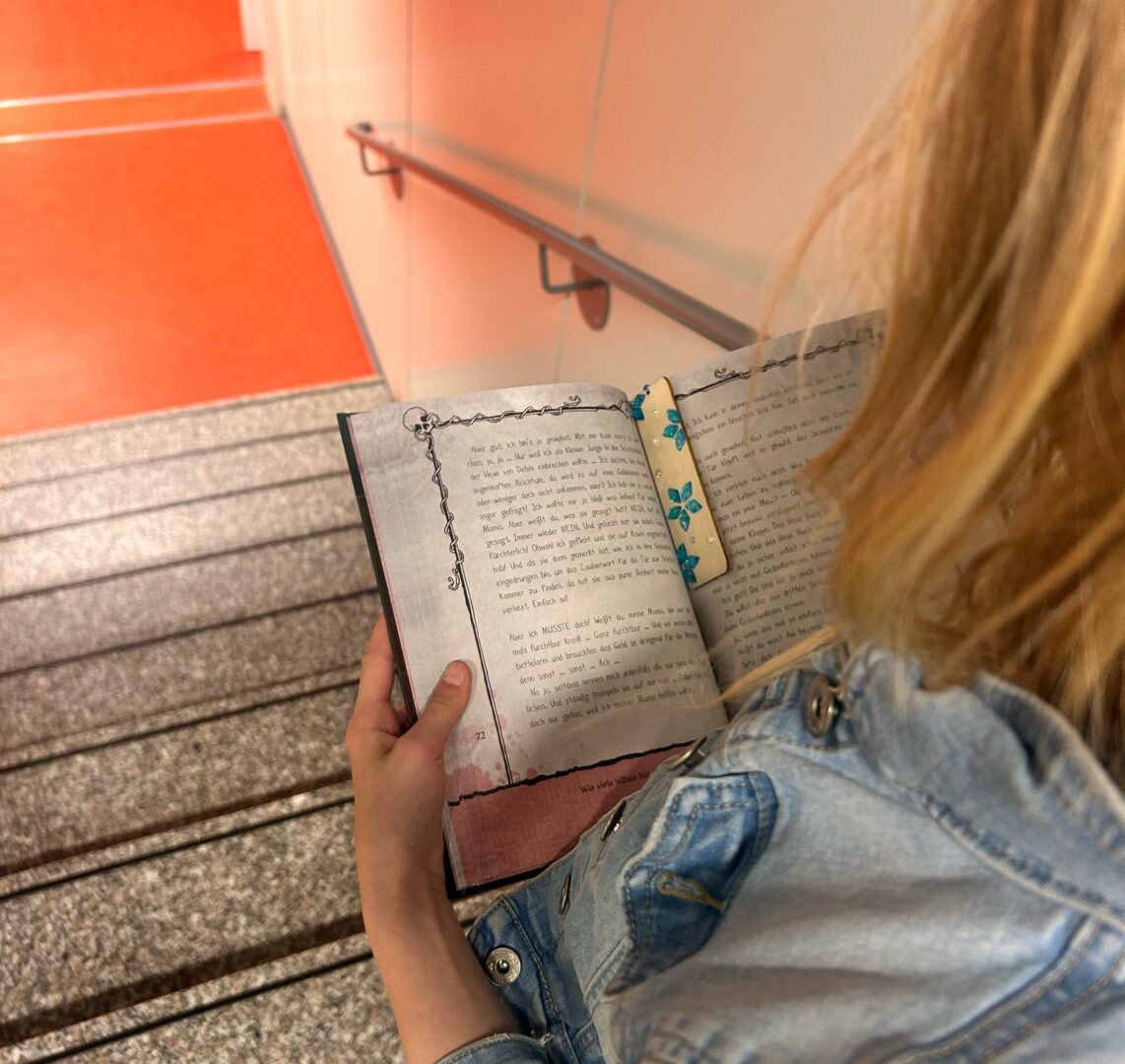 Nachdem die Klassenräume in gemütliche Lesehöhlen mit Kissen und Lichterketten verwandelt wurden, ging es am frühen Abend mit der Escape Story „Ignatius Hochzeit“ los, bevor sich die Mädchen kreativ beim Basteln von Lesezeichen austoben konnten.