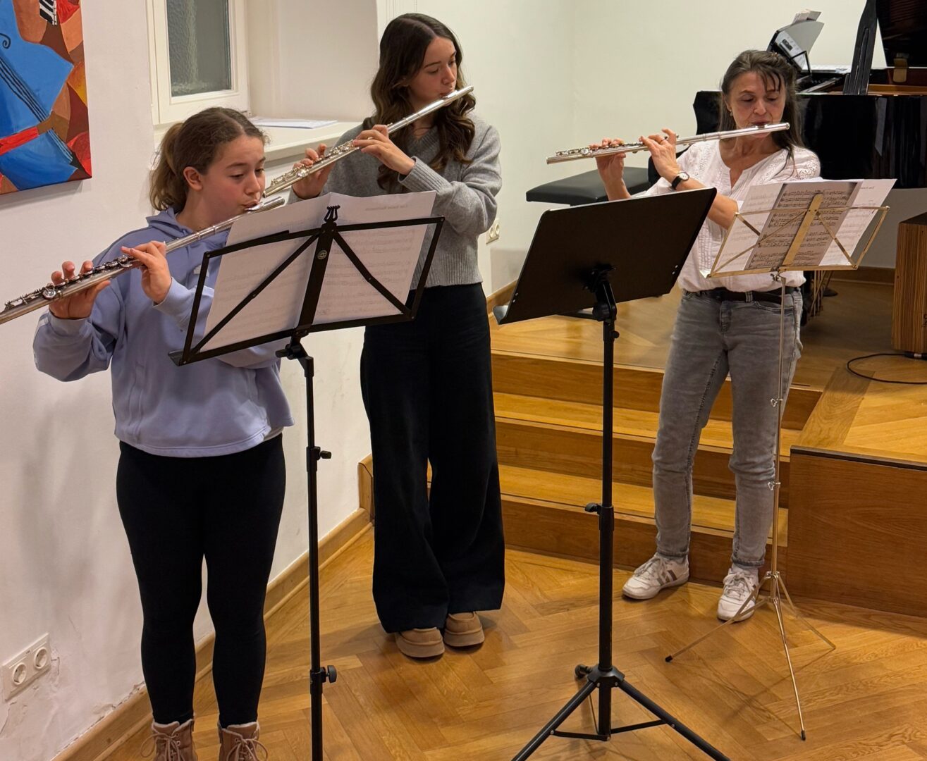 Während sich die Jury zur Beratung zurückzog, sorgten weitere musikalische Darbietungen für Unterhaltung:Tiziana Ganslmayermit der Klarinette,Leonie Elsam Flügel sowieMusiklehrerin Helga Hartlim Querflötentrio mit den SchülerinnenEmma Neckermann und Romy Kobeck.