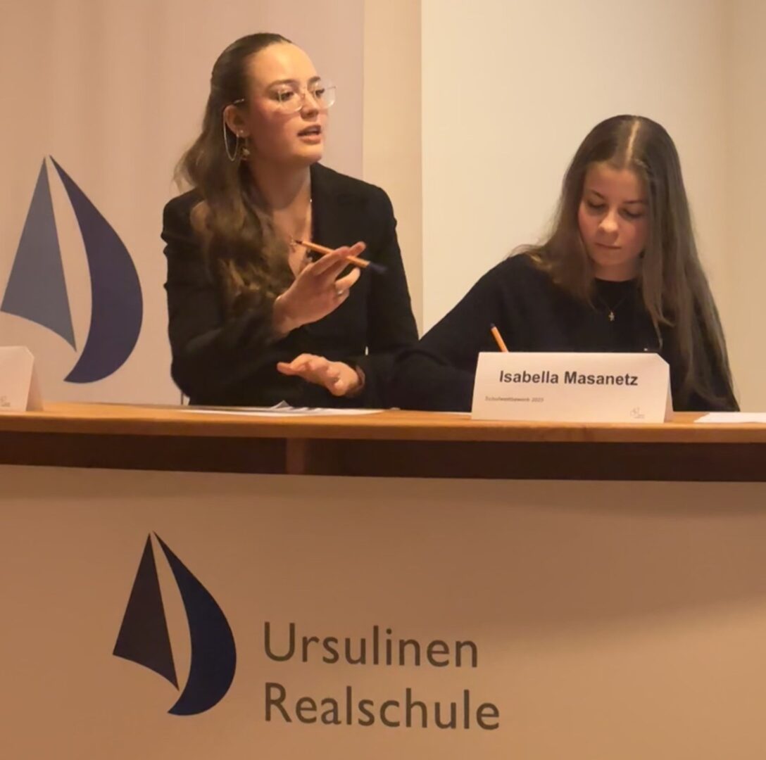 Julia Kosch und Isabella Masanetzargumentierten für ein Verbot der Zoos. Julia äußerte Zweifel daran, dass Zoos tatsächlich einen wesentlichen Beitrag zum Artenschutz leisteten und stellte infrage, ob sie das Wissen über Tiere wirklich förderten. Sie betonte zudem die negativen sozialen und physischen Folgen für die Tiere. Isabella führte an, dass Zoobesucher sich oft nur oberflächlich mit den Tieren auseinandersetzen und viele Tiere abnormales Verhalten zeigen würden – ein Beispiel hierfür seien Eisbären.