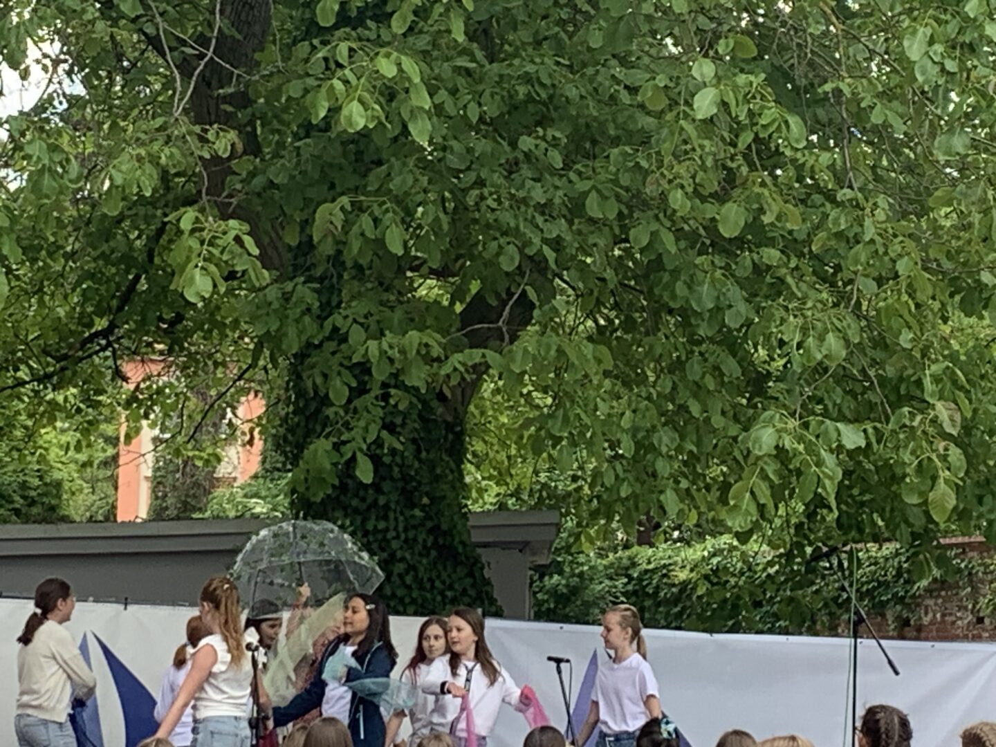 Ein zauberhafter Klang entstand, als Clémence Astruc (8c) an der Geige und Charlotte Weber (7d) an der Tuba gemeinsam „Hedwig’s Theme“ aus Harry Potter erklingen ließen. Schwungvoll ging es weiter mit dem „Tropical Fruit Market“, dargeboten von den Klassen 5a,b,c, und dem Bläserensemble, das mit „Supercalifragilisticexpialidocious“ bewies, dass auch musikalische Zungenbrecher gute Laune machen. Die Schulband der Jahrgangsstufen 5 bis 7 begeisterte alle Italo-Hit-Fans, zu denen sich der Verfasser dieses Artikels ausdrücklich zählt, mit „Sarà perché ti amo“ von Ricchi e Poveri und sorgte zwei Wochen vor den Pfingstferien für Urlaubsstimmung.