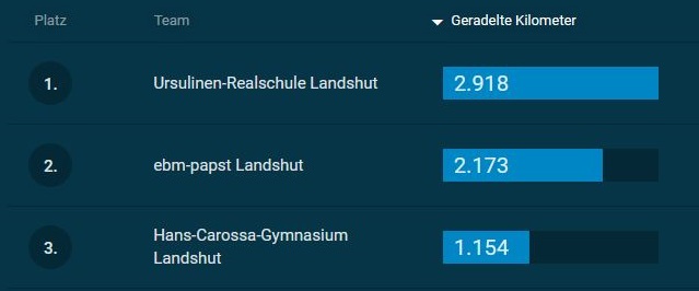 Vier Tage und fast dreitausend Kilometer!- Unsere Schule und alle, die für sie radeln, liegen beimLandshuter Stadtradeln2021, an dem sich 45 Institutionen, Vereine, Betriebe beteiligen, weiterhin auf Platz eins. Schülerinnen, Lehrer, Eltern, Verwaltung, Hausmeister, Ehemalige, ja sogar ein Opa einer unserer Schülerinnen – sie alle fahren für den Ursulinen „Rennstall“.Wer sich unserer Schule verbunden fühlt, darf sich jederzeit nochunserem Teamanschließen und seine gefahrenen Kilometer zwischen dem 18. Juni und 8. Juli eintragen. Jeder Kilometer, den man radelt – ob privat oder beruflich, ob in der Stadt oder auf dem Dorf, ob mit oder ohne Akku, ob auf Teer oder Kies gefahren – zählt dann für unsere Schule. Wer Schwierigkeiten bei der Registrierung hat, kann sich an den Teamkapitän (Sf) wenden (z. B. via MS Teams). Und denkt immer daran: Vorsicht im Straßenverkehr ist wichtiger als jeder gefahrene Kilometer!