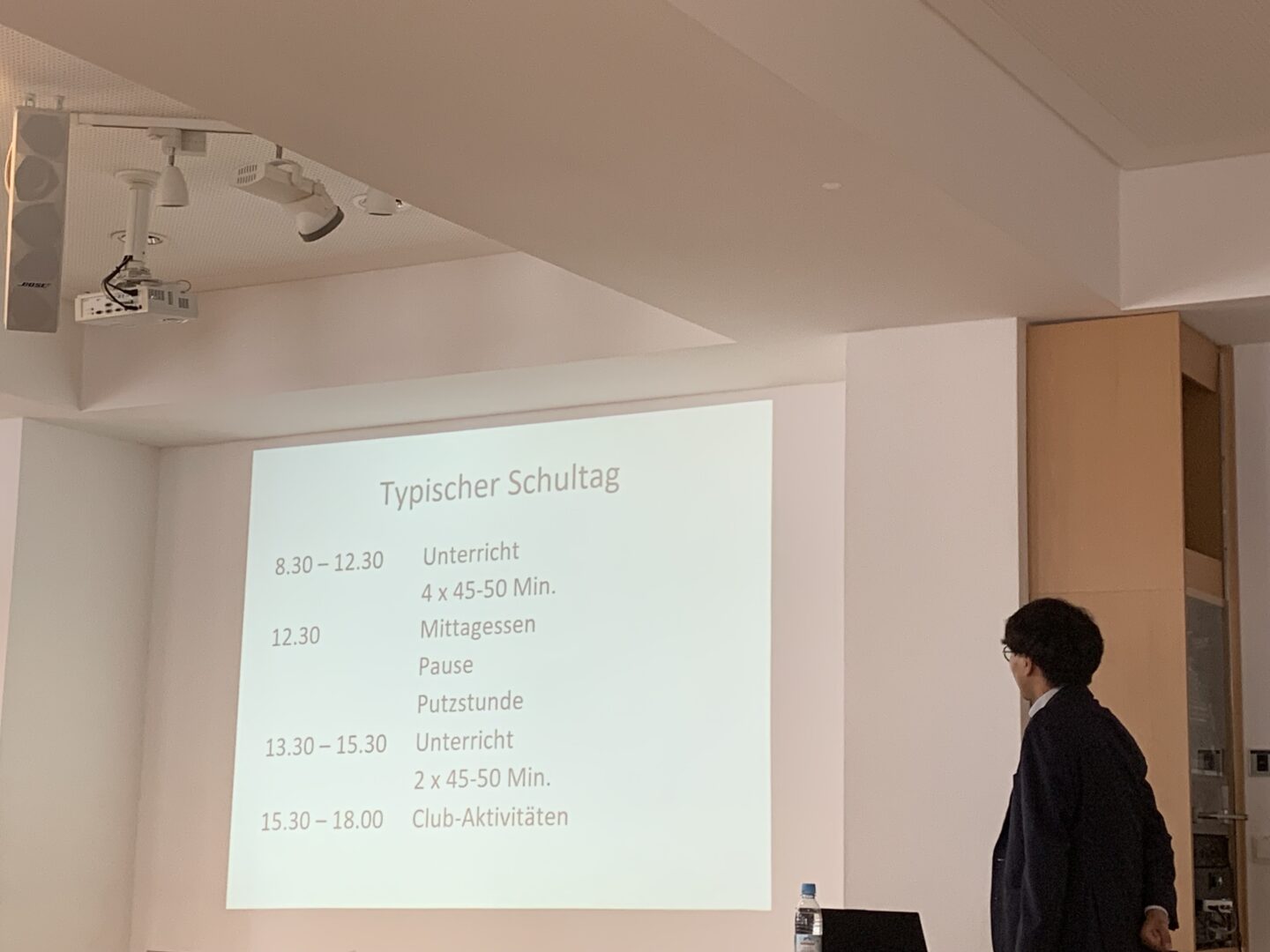Der Referent reiste mitJulian Helbrich, der Japanologie auf der Insel Kyushu studierte (ebenfalls vom Konsulat) aus München an, um den Schülerinnenim Rahmen des Geographieunterrichts die japanische Kulturin einem kurzen Vortrag näher zu bringen.
