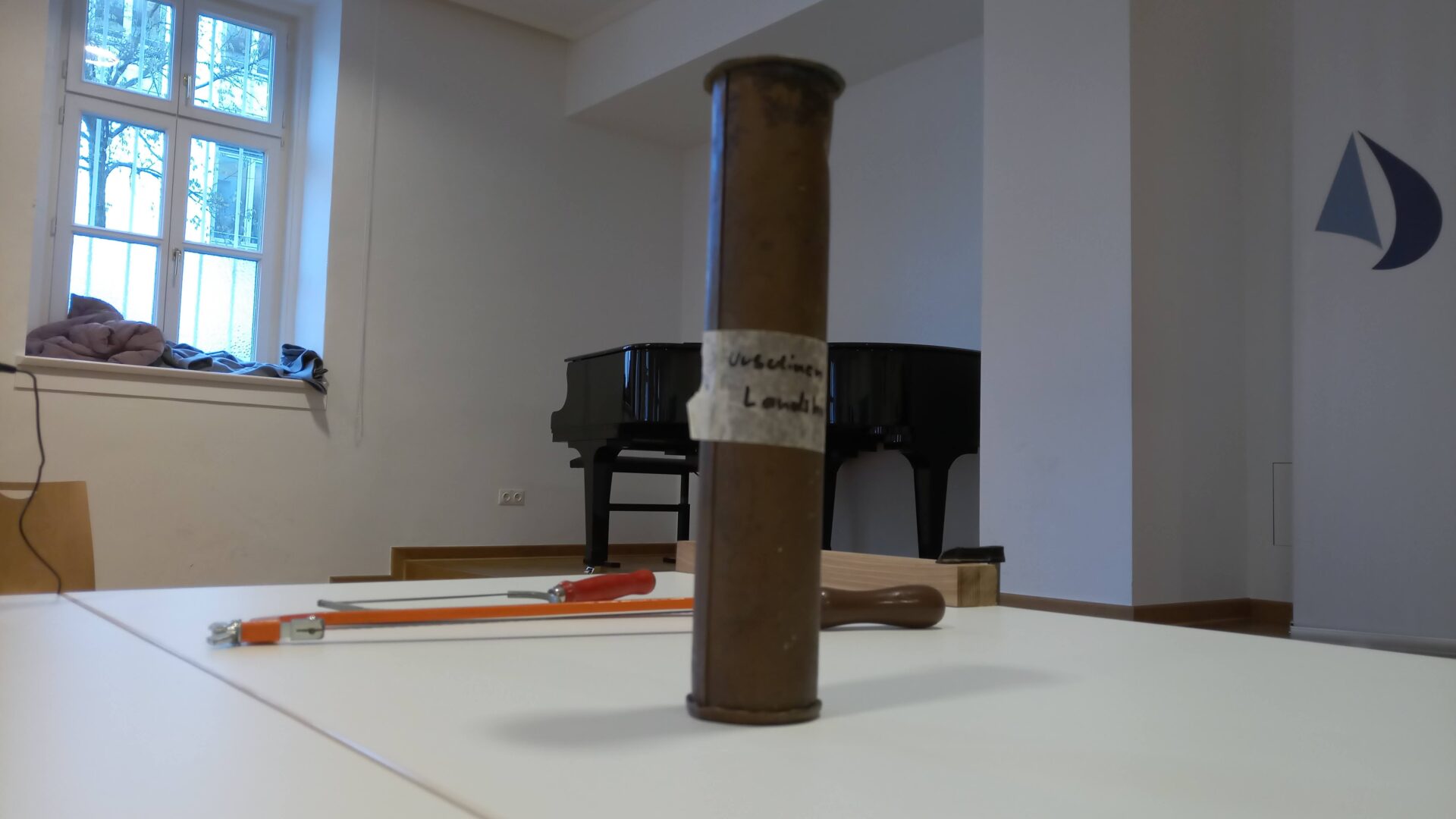 Während allerorts am ersten Dezember das erste Türchen des Adventskalenders geöffnet wurde, wurde an unserer Schule mit der Öffnung einer sogenanntenZeitkapselein Türchen in die Vergangenheit aufgestoßen. Die Zeitkapsel, ein kupfernes Behältnis, wurde von Zimmerern bei Renovierungsarbeiten in der Turmkugel der Ursulinenkirche Sankt Joseph gefunden. HausmeisterAlexander Langwar es vorbehalten, mit einer Eisensäge die Kapsel aufzuschneiden, um den Inhalt mit aller Vorsicht zu bergen. Eigens aus München angereist waren auchSr. Andrea Wohlfarter, die Oberin der Landshuter Ursulinen, sowieSr. Claudia Hattenkofer, die langjährige Konrektorin. Damit nicht nur die Vertreter der Schule die mit Spannung erwartete Öffnung in der Aula miterleben konnten, wurde das Ereignis perLivestream in die Klassenzimmerübertragen.Was kam nun aber zum Vorschein? – Drei vom Zahn der Zeit gezeichneteMünzen, vor allem aber ein zehnseitiges Exemplar derLandshuter Zeitung vom 7. Juni 1950. DirektorinAngela Schleibingerfasste das etwas modrig riechende, durchaus aber noch gut lesbare Exemplar vorsichtig an und entdeckte zu ihrer Freude auf der letzten Seite sogar dieErwähnung der Ursulinenschule, an der sich auf Aufforderung des Stadtschulamts „alle rechts der Isar wohnenden katholischen Kinder“ zur Volksschuleinschreibung im Sommer 1950 zu melden hatten.Die geöffnete Zeitkapsel soll, wie es Usus ist, wieder neu mit Gegenständen , die unsere Zeit repräsentieren, gefüllt und am Ursprungsort hinterlegt werden. Welche Gegenstände dies sein werden, welche Botschaften man an die Nachwelt weitergeben möchte, darüber hat das Nachdenken an der Schule natürlich längst begonnen.EinFilmbeitrag dazu ist auch im Niederbayern TV zu sehen(ab Minute 5’27“)
