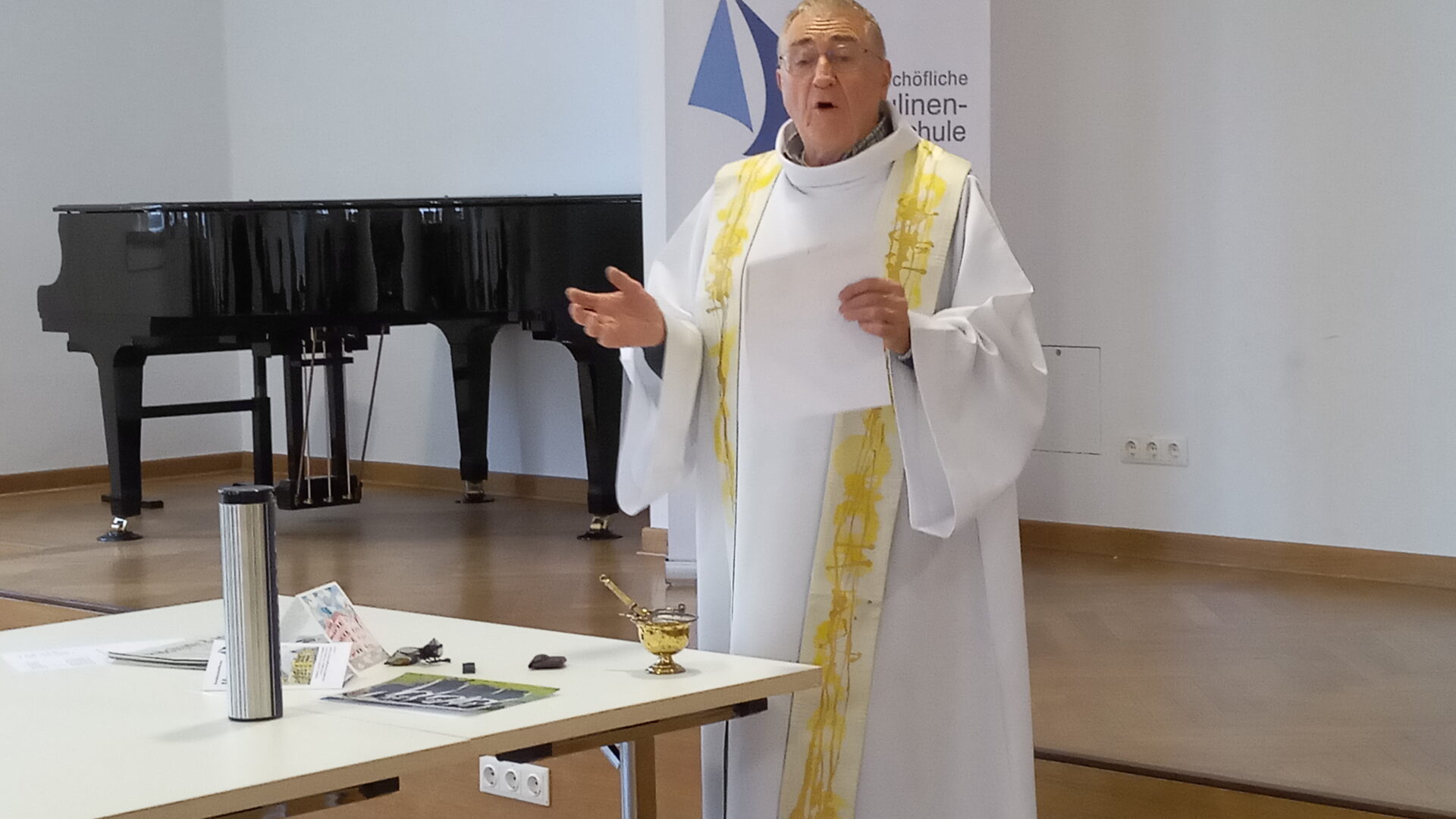 In einer kleinen feierlichen Zeremonie wurde heute eine neue Zeitkapsel an der Erzbischöflichen Ursulinen-Realschule in Landshut befüllt. Die Kapsel, die in der Turmkugel der Ursulinenkirche Sankt Joseph gefunden wurde, hatte im vergangenen Jahr bei Renovierungsarbeiten für Aufsehen gesorgt.Am 1. Dezember 2022 wurdedie alte Zeitkapsel geöffnet, die unter anderem ein Exemplar der Landshuter Zeitung aus dem Juni 1950 enthielt.