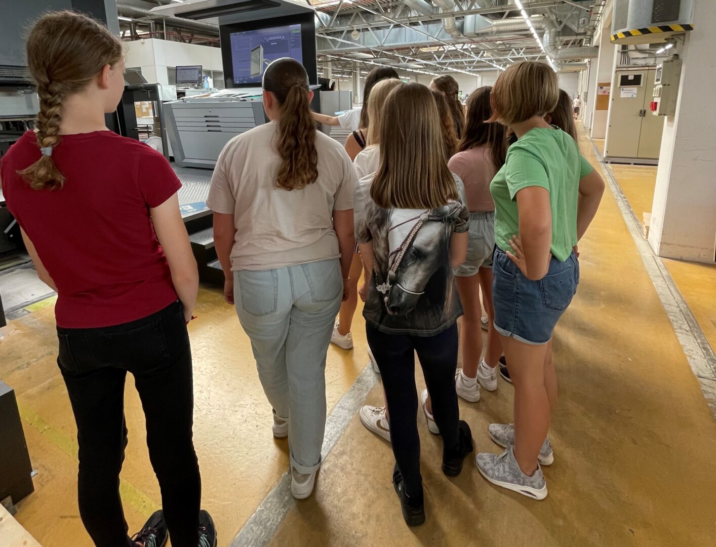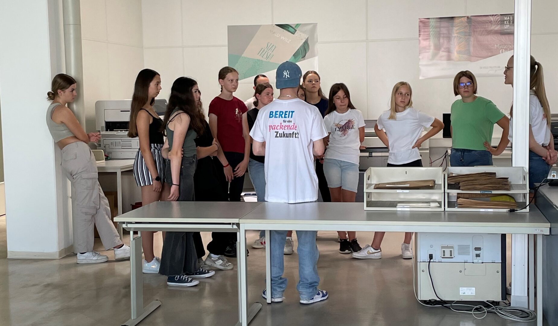 Abschließend wurden den Schülerinnen die vielfältigen Ausbildungsberufe durch eigene Auszubildende bzw. Mitarbeiter noch genauer vorgestellt. Mittlerweile bildet das Unternehmen in folgenden sieben Berufen aus: Mediengestalter, Industriekaufmann/ Industriekauffrau, Maschinen- und Anlagenführer, Fachkraft für Lagerlogistik, Fachlagerist, Medientechnologe Druck und Packmitteltechnologe (m/w/d).